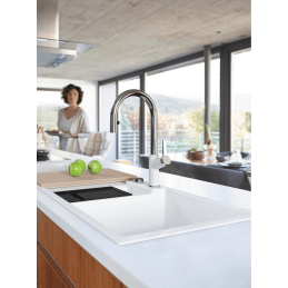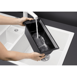 Blanco Collectis 6 S modern és elegáns megoldást kínál a konyhák számára, amelyek ötvözik a dizájnt, a funkcionalitást és a minőséget. Ez a gránit mosogató kényelmes méretben, 1000 × 510 mm tágas medencét és praktikus csepegtetőfelületet kínál, amelyek maximális kényelmet biztosítanak a mindennapi használat során.