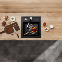 Blanco Dalago 45 egy elegáns és funkcionális gránit egymedencés mosogató, amely ötvözi a modern dizájnt, a praktikus megoldásokat és a magas színvonalú kidolgozást. Kompakt méreteinek és tágas medencéjének köszönhetően ideális választás kisebb konyhákba vagy mosogatógéppel felszerelt konyhákba.