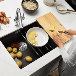 Blanco Etagon 500-U egy prémium egymedencés mosogató, amely munkalap alá történő beépítésre készült, ötvözve az időtlen dizájnt, kivételes minőséget és vonzó árat. Ez egy olyan mosogató, amelyet a mindennapi használat maximális kényelmére terveztek, rendkívül tágas medencével, amelyben kényelmesen elmoshatja a nagy fazekakat vagy sütőtepsit is.