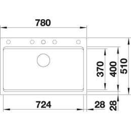A mosogató teljes mérete: 780 × 510 mm – a legtöbb szabványos konyhabútorhoz megfelelő.