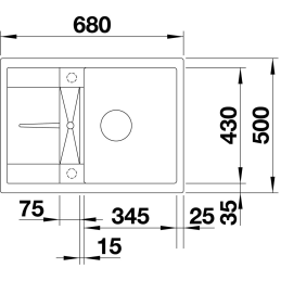 A mosogató külső méretei: 680 × 500 mm