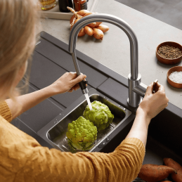 Blanco Metra 6 S egy praktikusan és dizájn szempontjából átgondolt gránit konyhai mosogató a neves BLANCO gyártótól. Ez egy egytálcás mosogató csepegtető felülettel, amelyet egy kisebb kiegészítő medence egészít ki, amely jelentősen növeli a kényelmet a mindennapi használat során – az élelmiszerek öblítésétől az edények szétválogatásáig.