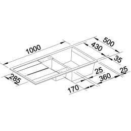 Nagyvonalú mosogató méretek: 1000 × 500 mm – elegendő munkafelület.