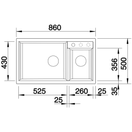Főmedence méretei: 525 × 430 mm