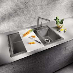 Blanco Metra 9 kivételesen praktikus és időtlen dizájnú gránit konyhai mosogató a neves gyártó BLANCO terméke. Nagyvonalú méreteinek és két mély medencéjének köszönhetően maximális kényelmet nyújt a mindennapi használat során – a nagy edények mosogatásától az ételek előkészítéséig.