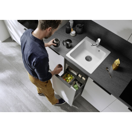 Blanco Naya 45 egy praktikus gránit konyhai mosogató, amelyet kisebb konyhák hatékony helykihasználására terveztek. A minimum 45 cm-es szekrényszélesség igényének köszönhetően ideális megoldás ott, ahol minden centiméter számít, kompromisszumok nélkül a kényelem és a minőség terén.