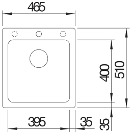 Előkészített furatok – 1 kifúrt lyuk + 2 előfúrt, kiüthető lyuk csaptelep vagy tartozék számára.