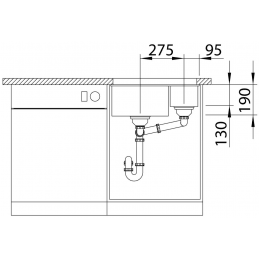 Kiegészítő medence: 160 × 400 mm, 130 mm mélység