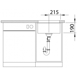 Összesen 430 × 460 mm méretével és tágas, 400 × 400 mm-es (190 mm mély) medencéjével elegendő helyet biztosít a mindennapi konyhai tevékenységekhez. A felső perem hiánya lehetővé teszi a szennyeződések egyszerű letörlését közvetlenül a mosogatóba, és optikailag növeli a munkafelületet.