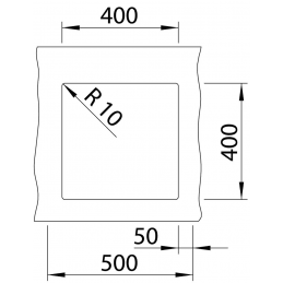 Összmérete 430 × 460 mm, tágas medencéje pedig 400 × 400 mm (mélység 190 mm), így elegendő helyet biztosít a mindennapi konyhai tevékenységekhez. A felső perem hiánya lehetővé teszi a szennyeződések egyszerű letörlését közvetlenül a mosogatóba, és optikailag növeli a munkafelületet.