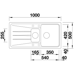 A 1000 × 500 mm teljes mérettel a mosogató bőséges munkaterületet kínál.