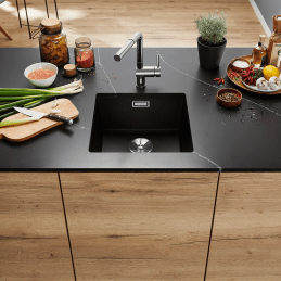 Blanco Subline 400-U a legmodernebb dizájn csúcsát képviseli az aláépíthető mosogatók kategóriájában. Ez az elegáns gránit mosogató 430 × 460 mm mérettel alsó szekrénybe való beépítésre készült, 50 cm-től szélességű szekrényhez, és ideális kombinációját kínálja a kompakt méretnek és a kényelemnek.