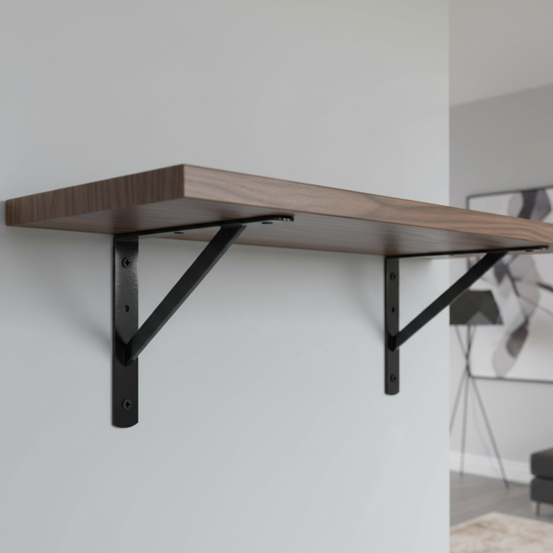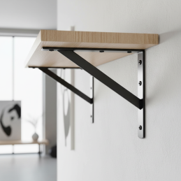 Fém polctartó modern ipari dizájnban. Falra szerelhető, fa és laminált polcokhoz is alkalmas. A masszív szerkezet ferde merevítéssel nagy szilárdságot és stabilitást biztosít.