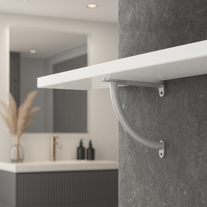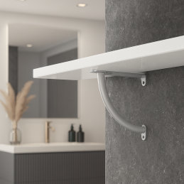 Elegáns és formatervezett polctartó 200-600 mm ajánlott polcmérettel. A polcok maximális terhelhetősége 150 kg. A tartó méretei a képeken láthatóak.
