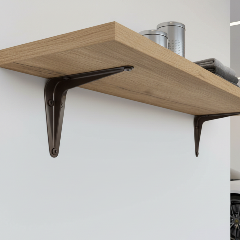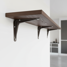 Klasszikus acél konzol polcokhoz univerzális barna kivitelben. Ideális könnyű vagy közepesen nehéz polcokhoz a konyhában, kamrában, dolgozószobában vagy műhelyben. Tartós szerkezet stabil támaszt nyújt fa és laminált polcokhoz is.