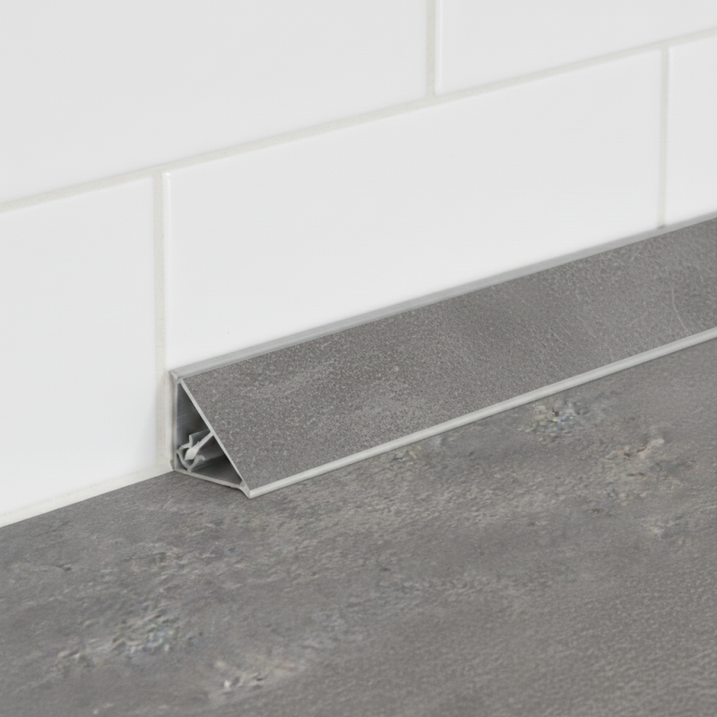 Két részből áll – az alsó rész csavarozható vagy ragasztható a munkalapra, a felső rész pedig rápattintható az alsóra. Így szilárd, pontos és egységes lezárás jön létre, ugyanabban a dekorban, mint a munkalap.