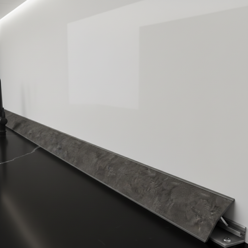 Két részből áll – az alsó rész csavarozható vagy ragasztható a munkalapra, a felső rész pedig rápattintható az alsóra. Így egységes, erős és esztétikus lezárás jön létre, ugyanabban a dekorban, mint a munkalap.
