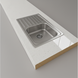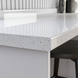 A KRONOSPAN munkalap modern és elegáns kivitelben, Andromeda Fehér fényes (K217 GG) dekorral, ideális választás azok számára, akik tiszta, világos és luxus konyhára vágynak. A finoman csillogó felület csillagport idéz, és különleges fényt, valamint mélységet kölcsönöz a belső térnek.