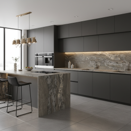 A Granit Magma szürke (F011 ST9) dekorú munkalap a természetes kő autentikus megjelenését hozza el finom szemcsézettséggel és visszafogott szürke árnyalatokkal. Az ST9 Smoothtouch Matt felületi struktúra selymesen matt hatást és kellemes tapintást kínál, amely elegáns és időtlen megjelenést kölcsönöz.