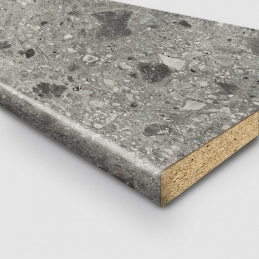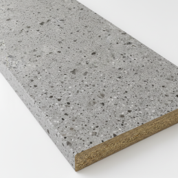 Az EGGER Terrazzo Triestino Szürke (F021 ST75) munkalap időtlen olasz stílust visz a belső térbe. A dekor a hagyományos terrazzo-t idézi – természetes kő keveréke finom struktúrákkal és szabálytalan töredékekkel szürke, fehér és fekete árnyalatokban. Ennek köszönhetően elegáns, modern hatást kelt, és remekül kombinálható fával, betonnal vagy minimalista, sima felületekkel.