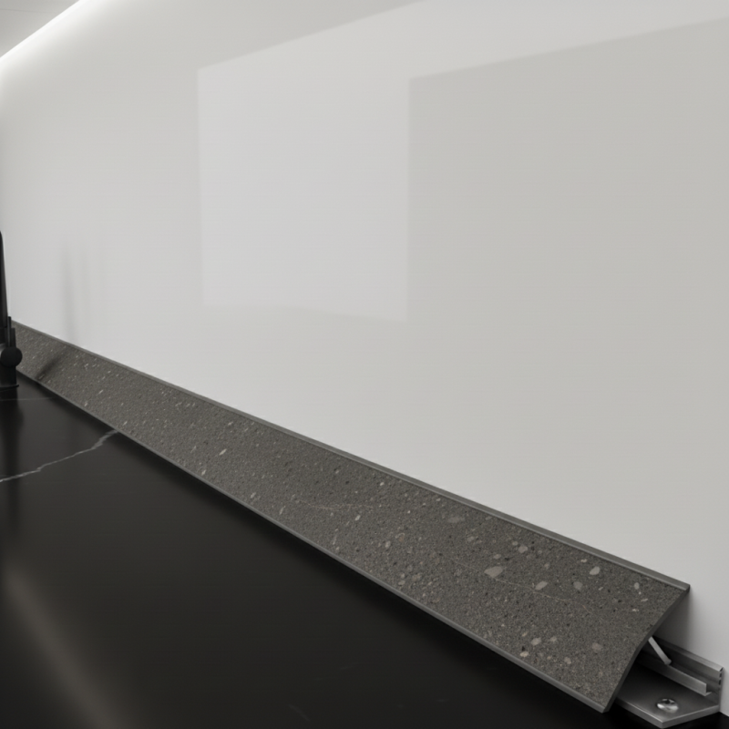 Két részből áll – az alsó rész csavarozható vagy ragasztható a munkalapra, a felső rész pedig rápattintható az alsóra. Így stabil, pontos és elegáns lezárás jön létre, ugyanabban a dekorban, mint a munkalap.