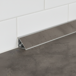 Elegáns és stílusos KRONOSPAN tömítő profil Fossil Arosa (K539) dekorban, amelyet professzionális és precíz munkalap lezárásra terveztek. A profil megbízhatóan tömíti a munkalap és a fal közötti illesztést, így hatékonyan megakadályozza a víz és szennyeződések bejutását, ugyanakkor modern és természetes kőhatást kölcsönöz a konyhának sötétszürke, grafit árnyalatban, finom textúrával és gyöngyházfényű hatással.