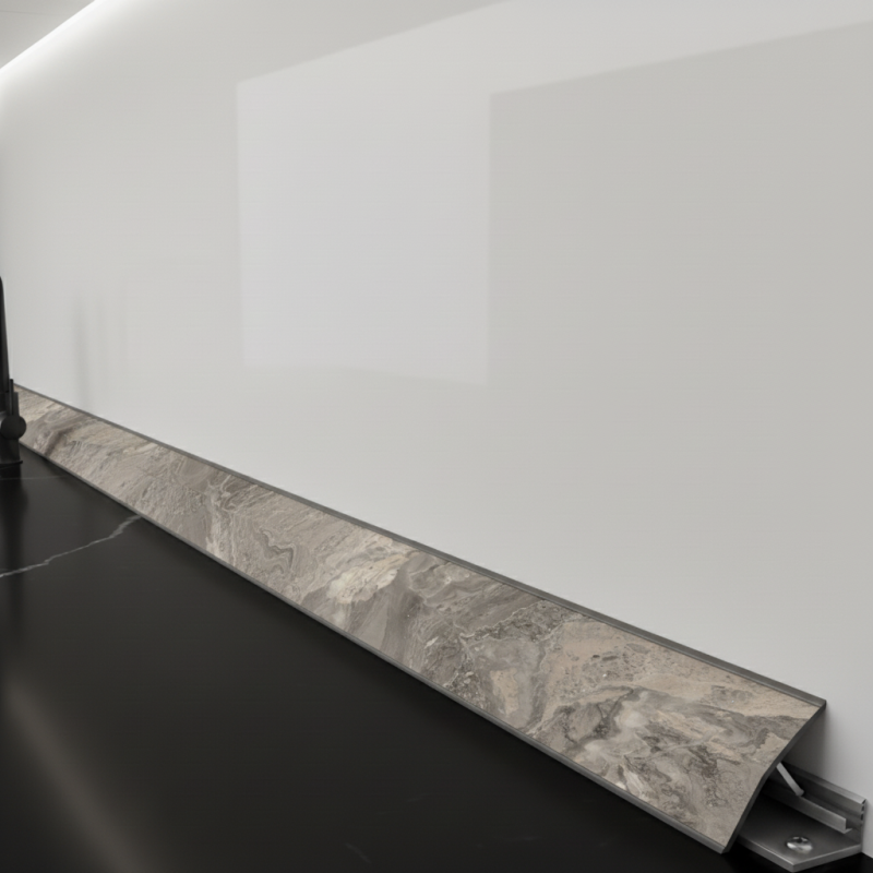 Két részből áll – az alsó rész csavarozható vagy ragasztható a munkalapra, a felső rész pedig rápattintható az alsóra, így tiszta és elegáns lezárást képez ugyanabban a dekorban, mint a munkalap.