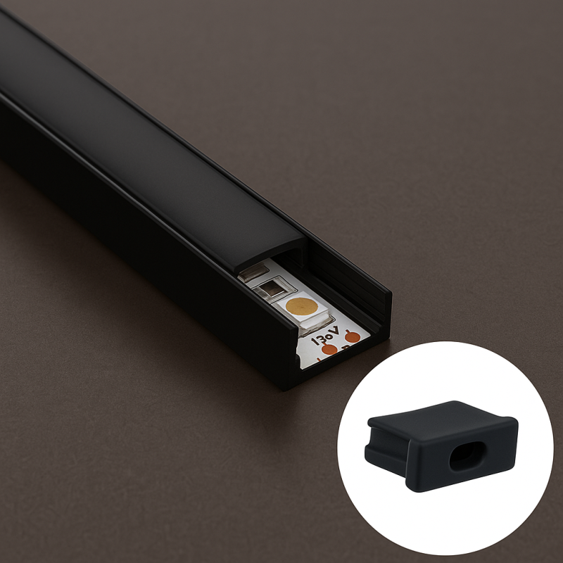 Alumínium sín ANIMA LL-01 LED világításhoz fedéllel / Fekete