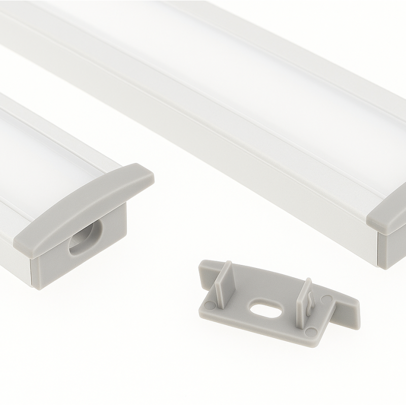Esztétikus és funkcionális lezárást biztosít a LED profilnak – védi az éleket, megakadályozza a por bejutását, és egyben lehetővé teszi a tápkábel egyszerű kivezetését.