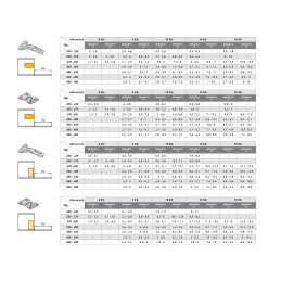 A képeken látható táblázat segít kiválasztani az ajtó súlyát és a mechanizmus tájolását, hogy kiválaszthassa, milyen erőre van szüksége a bútorához.