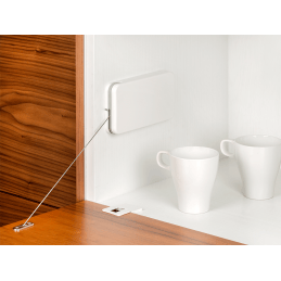 Ideális otthoni és nappali bútorokhoz. Nagyon gondosan tervezett dizájnos lágy és geometrikus vonalakkal. Csökkentett méretű mechanizmus, amely vékony, így illeszkedik az egész bútordarabhoz. A borítással együtt a végeredmény nagyon elegáns. Az ajtó zsanérja csillapított, és van egy zárótámasz, amely lehetővé teszi, hogy az ajtót a becsukás előtt elengedjék, csökkentve ezzel a becsukáskor fellépő ütést.
