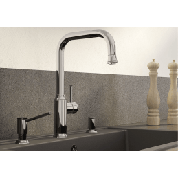 Dizájn kompatibilitás – tökéletesen összehangolt húzókarral vagy Livia sorozatú konyhai csapteleppel kombinálható.