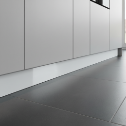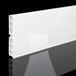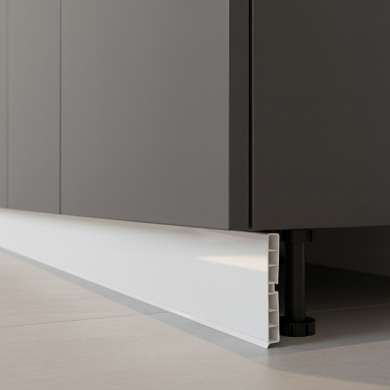 Elegáns és minőségi műanyag konyhai szokliléc PAX fényes fehér RAL 9016 árnyalatban ideális választás a modern konyhabútorokhoz.