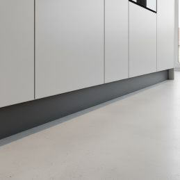 A modern és elegáns PAX műanyag konyhai szegélyléc antracit RAL 7016 árnyalatban tökéletes megoldás a modern, ipari vagy minimalista stílusú konyhákhoz.