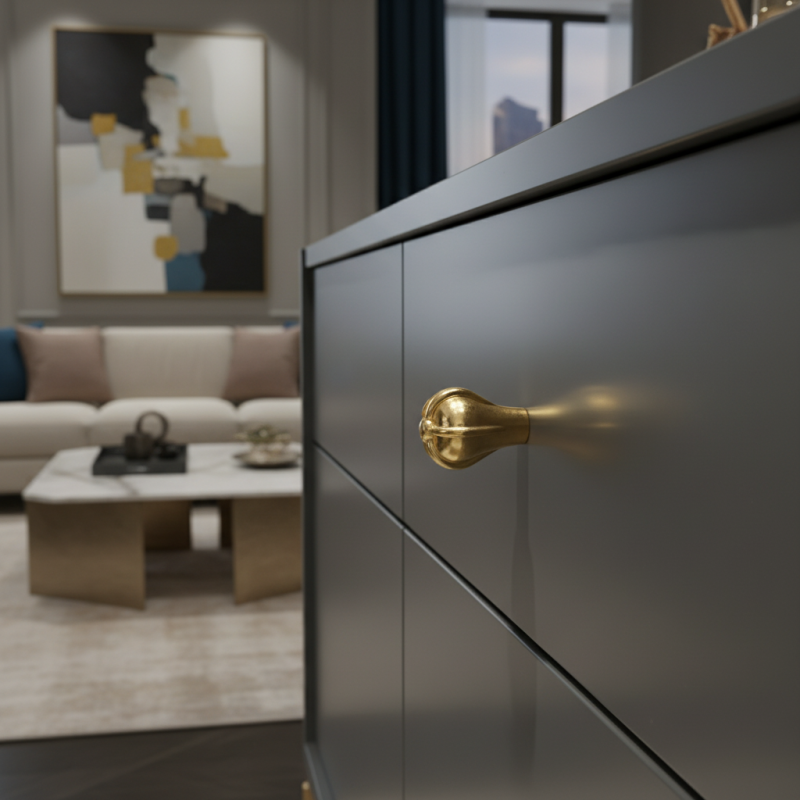A gomb könnyű, kellemes tapintású, és alkalmas fiókokhoz, szekrényekhez vagy kisebb ajtókhoz.