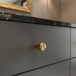 Az elegáns műanyag CROWN gomb arany felületkezeléssel stílusos kiegészítője a rusztikus, klasszikus és romantikus enteriőröknek. Koronára emlékeztető formája eredeti és dekoratív hangsúlyt ad a bútornak, amely így karakteres dizájnelemmé válik.