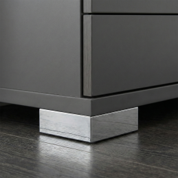 A krómozott felületű műanyag bútortalp stabil alátámasztást biztosít a bútoroknak, például szekrényeknek, komódoknak vagy kisebb tárolóelemeknek. Egyszerű formájának és semleges dizájnjának köszönhetően modern és klasszikus enteriőrökbe egyaránt alkalmas.