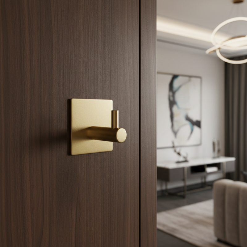 Egyszerű, elegáns és rendkívül praktikus GINNA öntapadós akasztó arany szálcsiszolt kivitelben ideális megoldás fürdőszobába, konyhába vagy bármilyen helyre, ahol nem szeretne vagy nem tud a falba fúrni. Az időtlen szálcsiszolt arany felület luxus megjelenést kölcsönöz a térnek, miközben megőrzi a minimalista stílust.