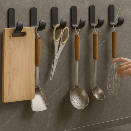 🔩 Egyszerű telepítés – csak el kell távolítani a védőfóliát, és az akasztót tiszta, száraz felületre kell ragasztani, fúrás nélkül.