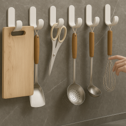 🔩 Egyszerű telepítés – csak el kell távolítani a védőfóliát, és az akasztót tiszta, száraz felületre kell ragasztani, fúrás nélkül.