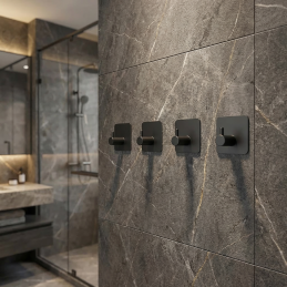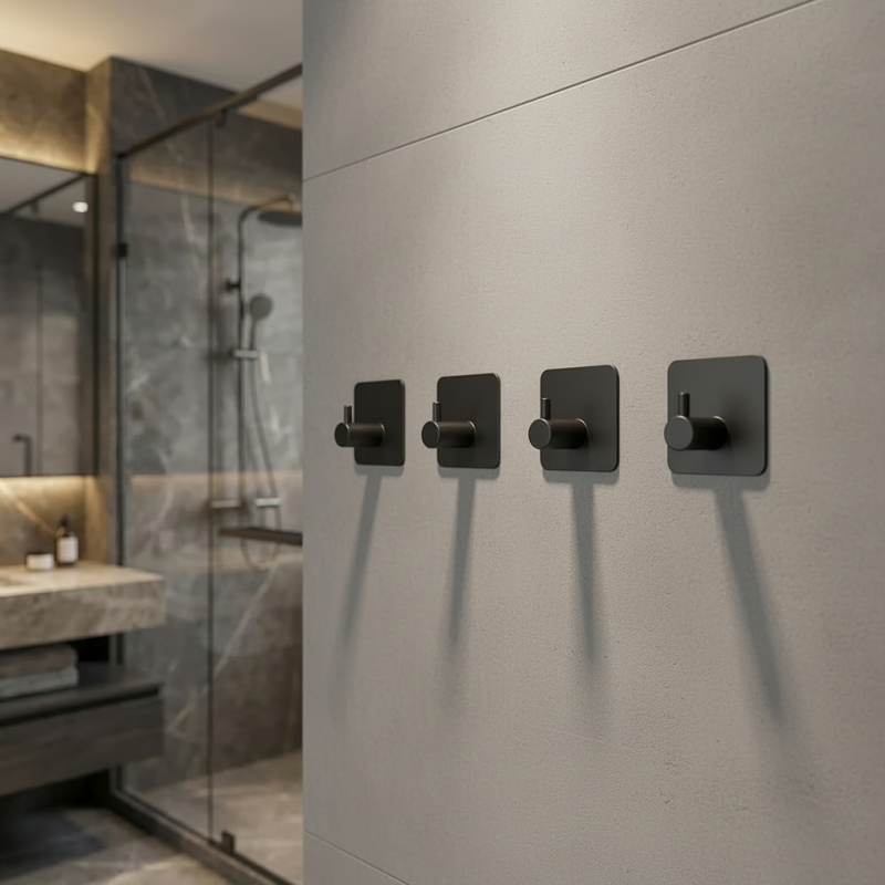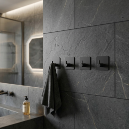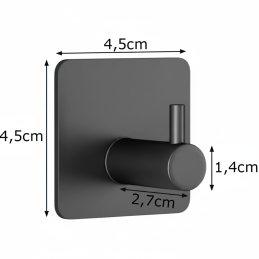 Egyszerű és dizájnos akasztó, amely alkalmas fürdőszobába vagy konyhába. A hátoldalon kétoldalas ragasztószalag található, amelyet egyszerűen ragasszon fel arra a helyre, ahová az akasztót helyezni kívánja.