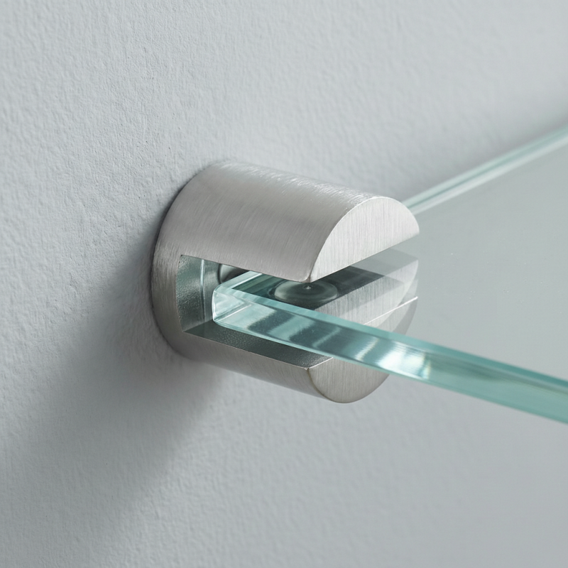 A LONIA tartó alkalmas üvegpolcok rögzítésére, a belső védőalátét stabilitást biztosít és védi az üveget a sérülésektől. Praktikus és letisztult dizájnmegoldást jelent modern enteriőrökbe.