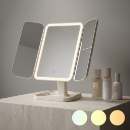 A tükör állítható színhőmérsékletű LED világítással van felszerelve, így ideális olyan helyiségekbe is, ahol kevés a természetes fény. A jobb oldali tükör 2×-es és 3×-os nagyítást kínál, amit nagyra értékel majd a precíz részleteknél, például szemsminkelésnél vagy szemöldökformázásnál.
