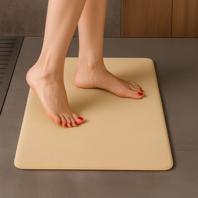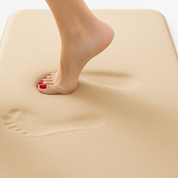A SANTANA fürdőszobai szőnyeg tökéletes kényelmet és luxusérzetet nyújt minden egyes lépésnél. A memóriahabnak köszönhetően alkalmazkodik a láb formájához, és minden fürdés vagy zuhanyzás után puha, meleg és kellemes érzést biztosít.