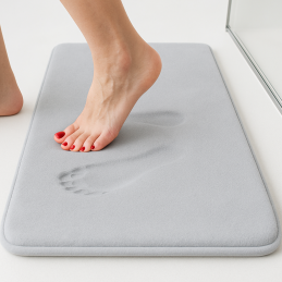 A SANTANA fürdőszobai szőnyeg tökéletes kényelmet és luxusérzetet nyújt minden egyes lépésnél a fürdőszobában. A memóriahabnak köszönhetően alkalmazkodik a láb formájához, és minden fürdés vagy zuhanyzás után puha, meleg és kellemes érzést biztosít.