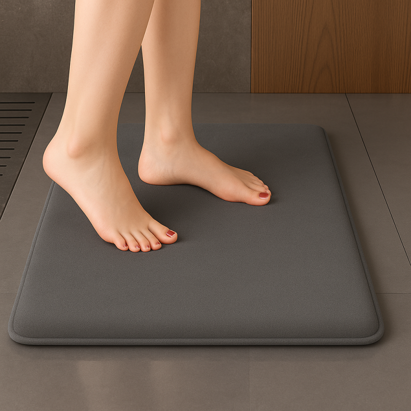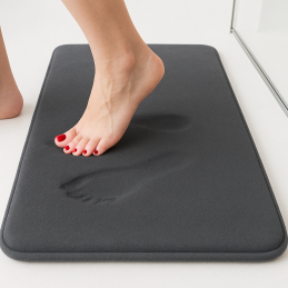 A SANTANA fürdőszobai szőnyeg tökéletes kényelmet és luxusérzetet nyújt minden egyes lépésnél a fürdőszobában. A memóriahabnak köszönhetően alkalmazkodik a láb formájához, és minden fürdés vagy zuhanyzás után puha, meleg és kellemes érzést biztosít.