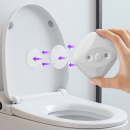 Csak helyezze a WC-ülőke alá – a fedél lecsukása után automatikusan aktiválódik és elindítja a fertőtlenítési ciklust.