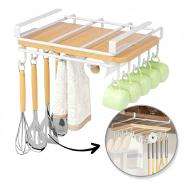 A tartó kiválóan alkalmas szeletelődeszka tárolására, konyharuhák felakasztására, papírtörlő hengerekre, csészékre, evőeszközökre vagy kisebb konyhai eszközökre. Modern, minimalista megjelenésének köszönhetően klasszikus, modern és skandináv enteriőrökbe is illik.