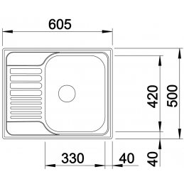 Mosogató mérete: 605 × 500 mm