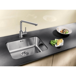 Blanco Supra 500-U ideális választás minimalista és modern konyhákhoz. Ez a kiváló minőségű rozsdamentes mosogató összesen 530 × 430 mm mérettel alsó szekrényekhez készült, amelyek szélessége 60 cm-től indul.